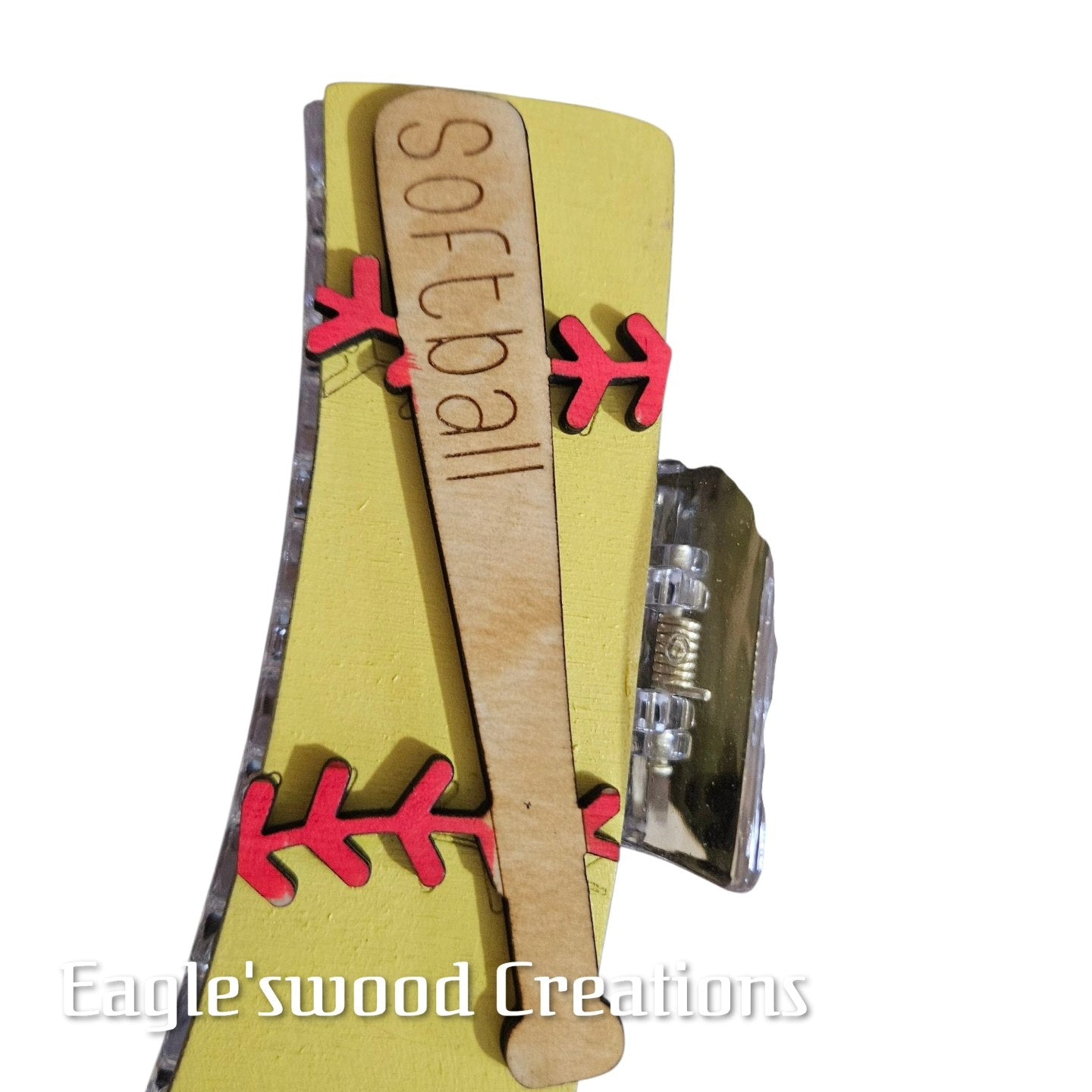 Score big with this spirited Softball Hairclip! Show off your athletic pride with this fun accessory featuring a classic softball design. Whether you're heading to the field, cheering from the stands, or just love the sport, this clip celebrates your passion for the game. Keep your hair game strong while displaying your team spirit in style. Perfect for athletes and softball fans who want to wear their love of the sport!