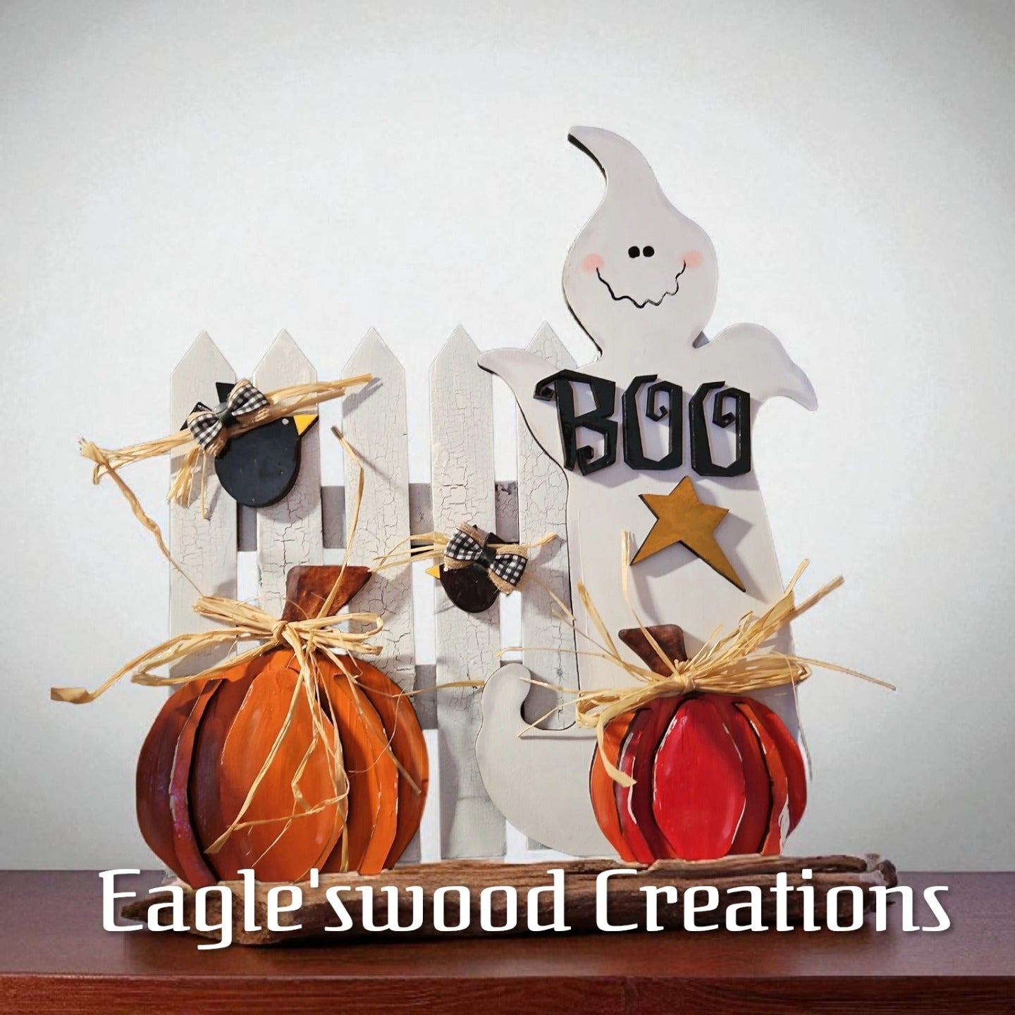 Add a touch of spooky charm to your décor with the Picket Fence Boo shelf sitter. This playful ghostly picket fence brings a fun, festive vibe to any shelf or tabletop, perfect for Halloween or year-round whimsy. Its cheerful design brightens your space with a hint of ghostly delight, making your home both inviting and delightfully eerie.